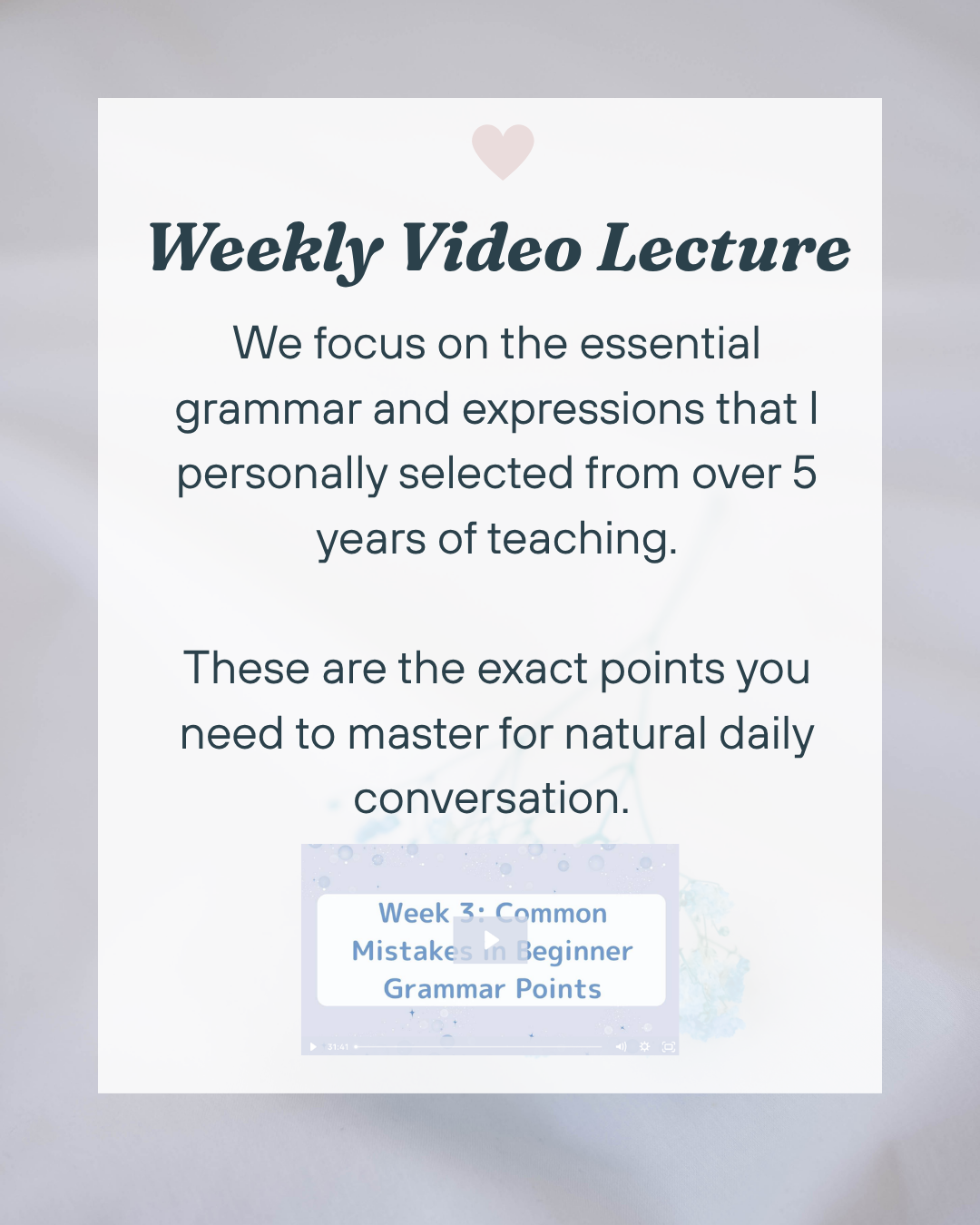 Video Lectures: Master grammar points that are essential for daily conversation and that learners frequently misuse—including all the crucial nuances.