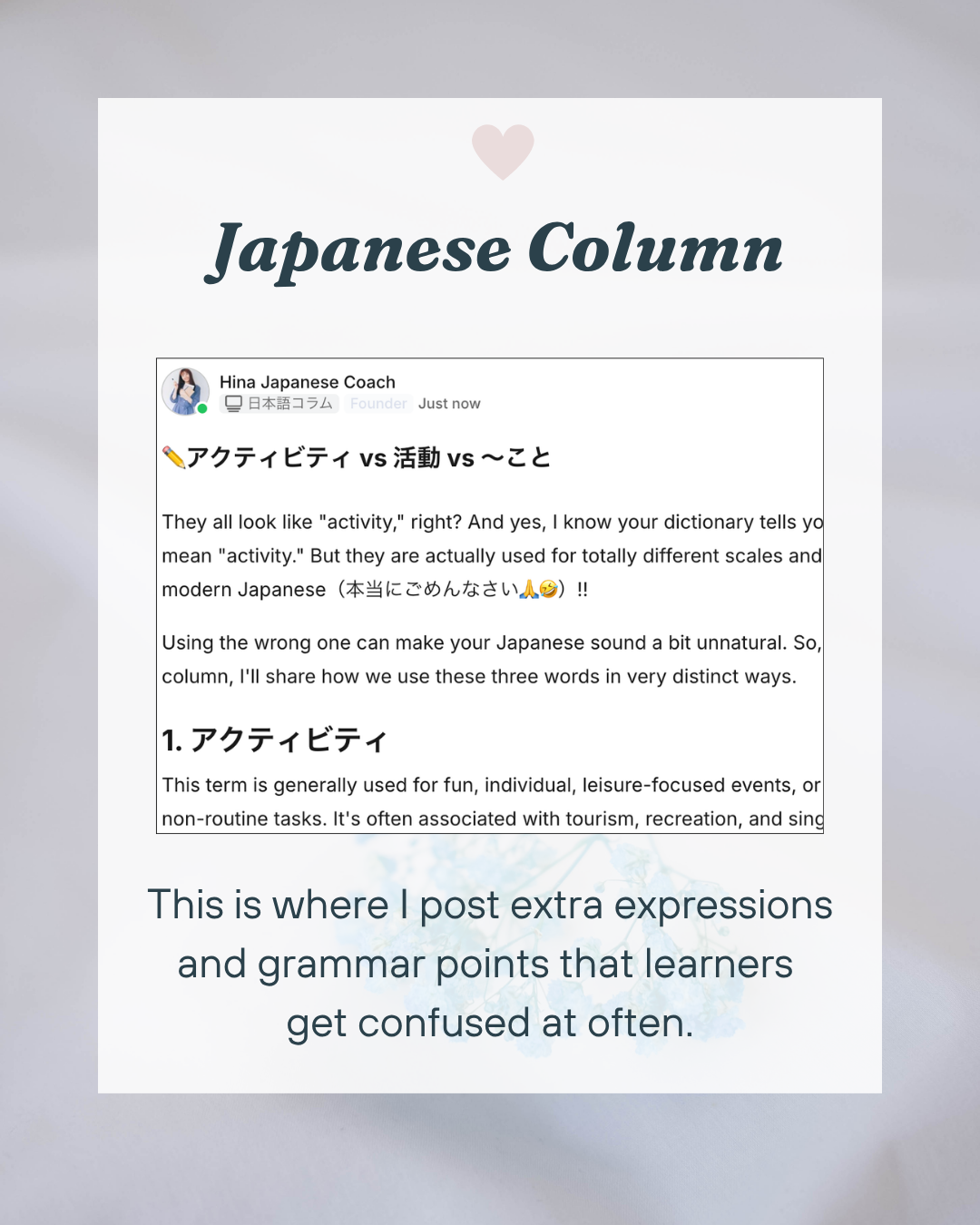 Resource Library: Full access to all past group coaching replays and our "Japanese Column" of common mistakes.