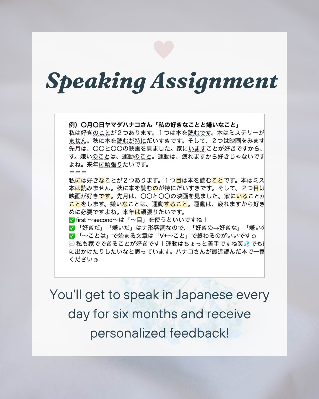 Daily Practice: Submit speaking assignments every day and receive personalized feedback to cement your learning.